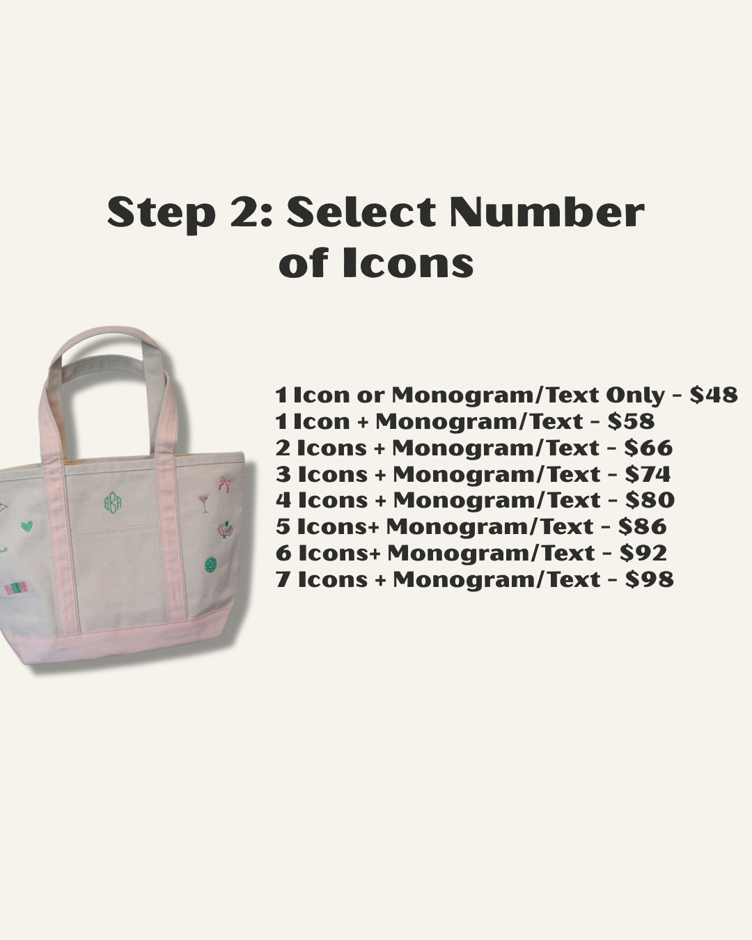 - Select number of icons with monogram/text