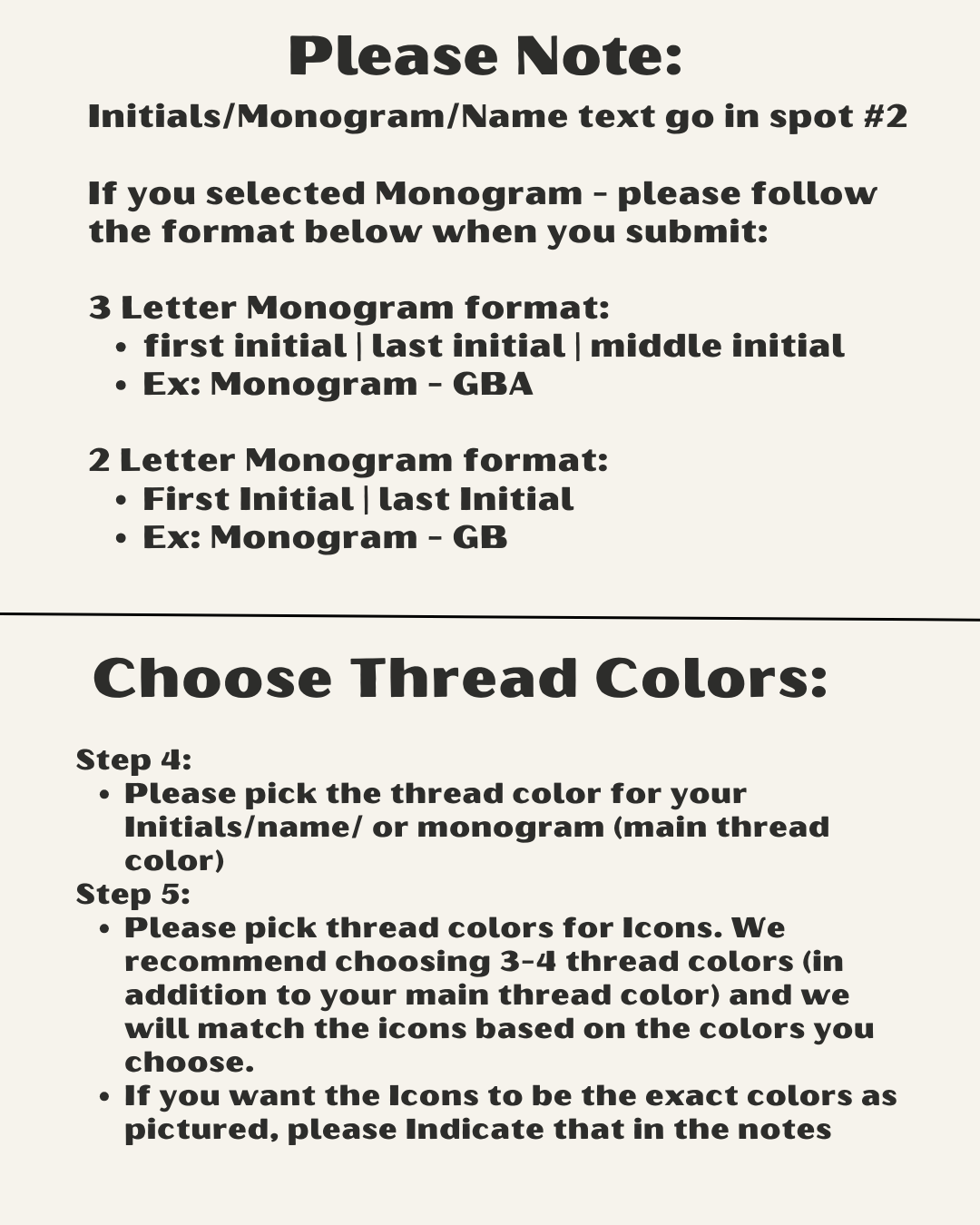 - Specify monogram or initials or name/text in the text box