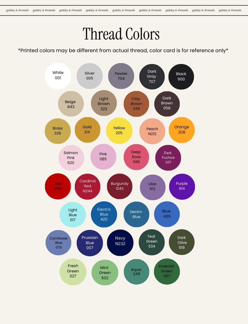 5. PLACE YOUR ORDER! Please don't hesitate to reach out to gabby@gabbyandthreads.com for any help with your order. We will reach out to you if we have any questions concerning your order.